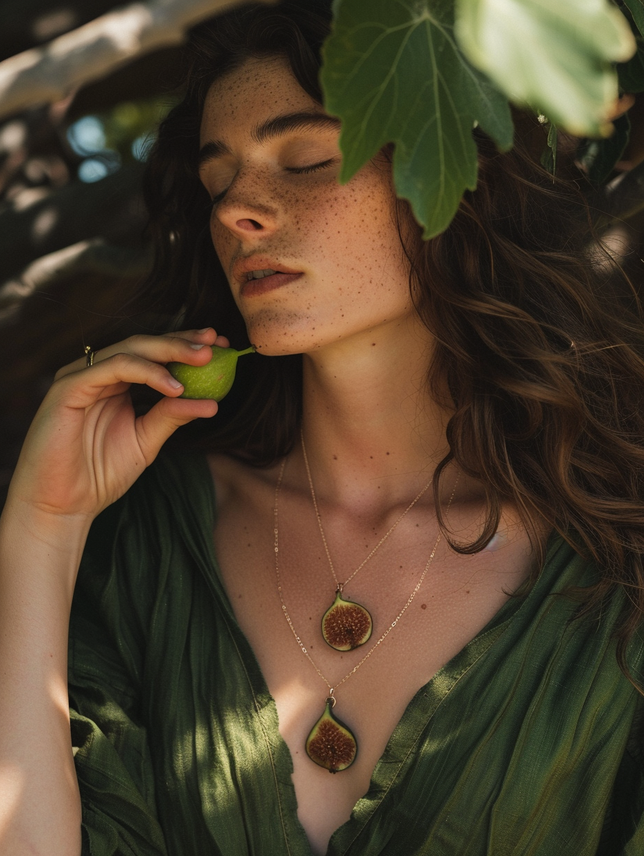 Inspired by sacred love, fig trees, golden dusk, and poetic femininity.